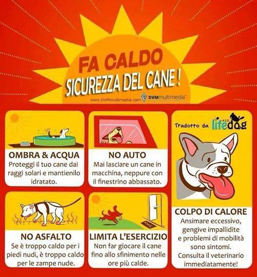 - Non uscite nelle ore più calde, l'asfalto diventa rovente, se siete incerti fate questa prova: mettete il palmo della mano a terra, se resistete più di 7 secondi i cuscinetti delle zampe sono al sicuro da lesioni da scottatura